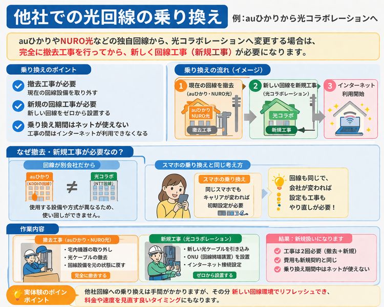 乗り換えは回線の種類によって方法が異なり、内容を正しく理解していないと「思ったより安くならない」「手続きが増える」といったズレが起きやすくなります。