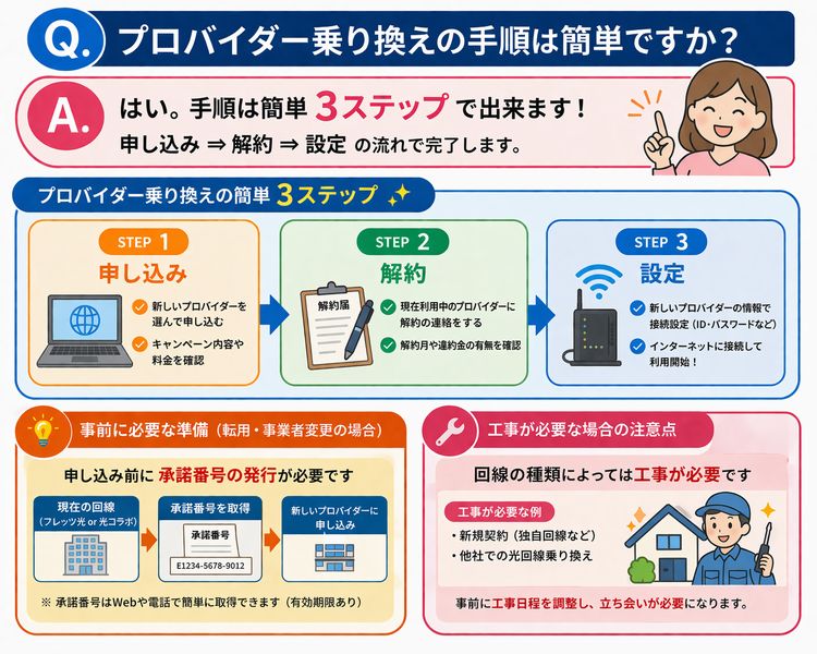 Q.プロバイダー乗り換えの手順は簡単ですか?