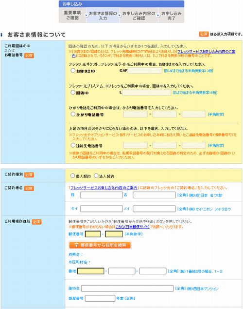 NTT西日本での申し込み手順