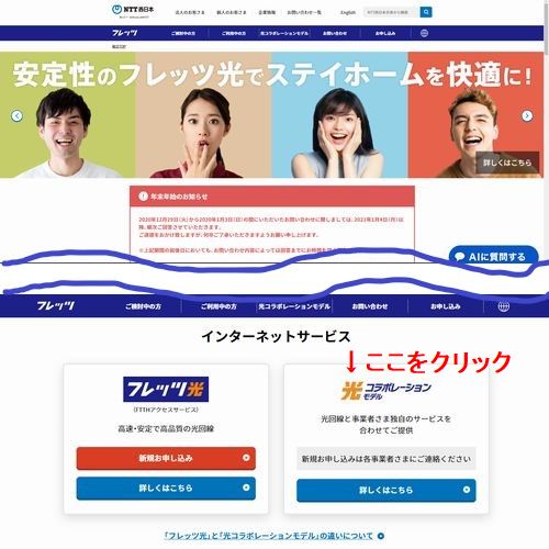 まずはNTT西日本のホームページへアクセスをします⇒NTT西日本