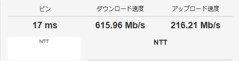 今日も回線速度は快適です。上が615。下が216です。